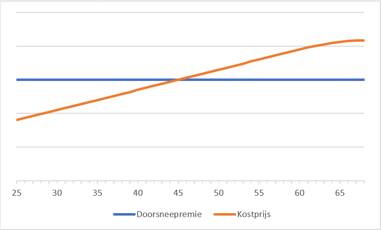 Het gebeurt dus dat een deel van de doorsneepremie voor een jongere naar een oudere gaat. Werkte iemand zijn hele werkende leven voor dezelfde werkgever, dan is er over de hele periode precies genoeg voor zijn pensioen ingelegd.